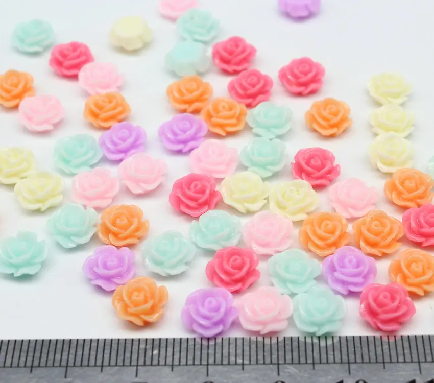 Оптовая продажа, 400x миниатюрные 3D бусины из смолы с цветами розы для ногтевого дизайна, декоративные бусины 8 мм