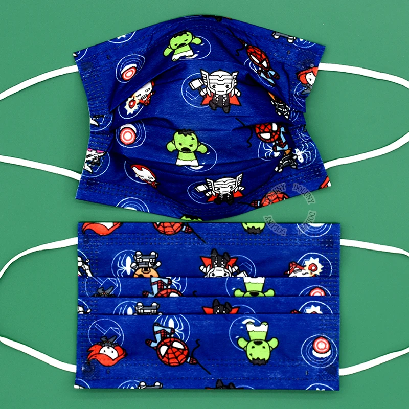 Одноразовая детская маска 3-слойная мультяшная анимационная Пылезащитная маска с фильтром хлопковая маска мстители супергерой для мальчиков чехол для лица для детей