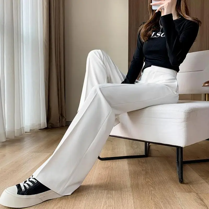 Брюки женские свободные с широкими штанинами, длинные штаны с завышенной талией, рабочая одежда черного цвета, весна