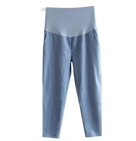 Брюки для беременных тонкие брюки из хлопка и льна весенние Летние повседневные свободные брюки с высокой талией для поддержки живота одежда для беременных женщин