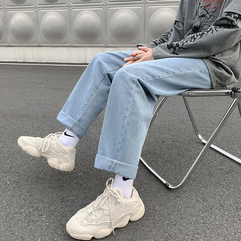 2022 мужские мешковатые джинсы, Корейская уличная одежда, прямые джинсовые свободные брюки с широкими штанинами, мужские повседневные Молодежные джинсы в стиле хип-хоп синего и черного цвета