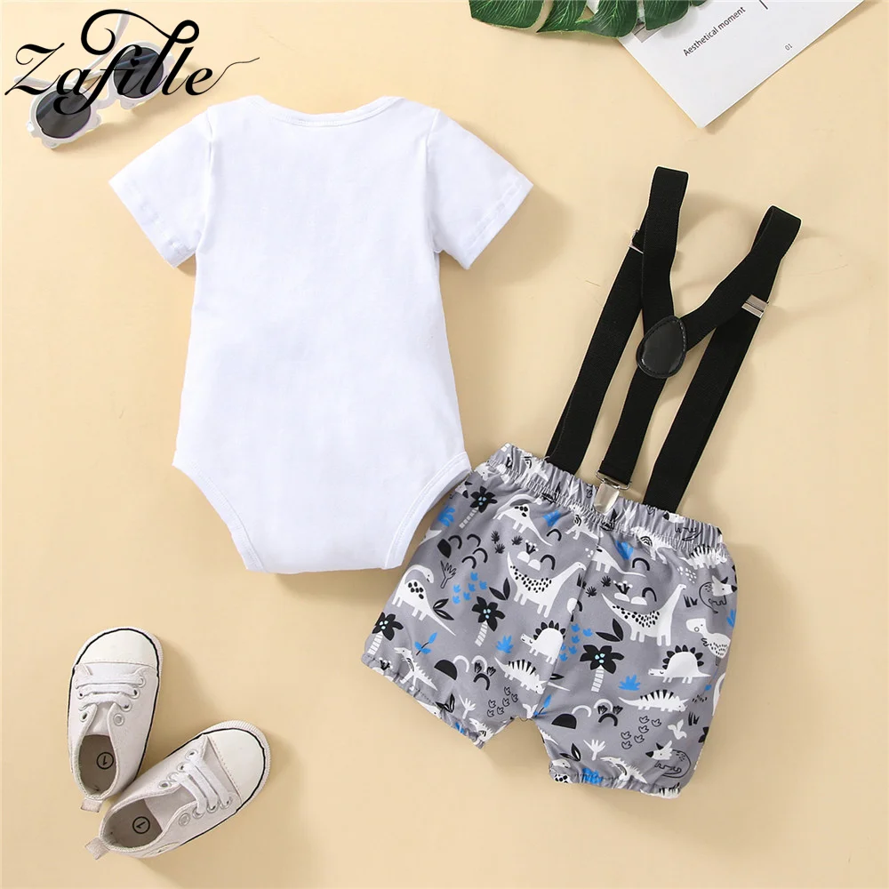 ZAFILLE, наряды на 1-й день рождения для мальчиков, детское боди, комплект, милый костюм с принтом динозавра для малышей, джентльменов, детей, раньше