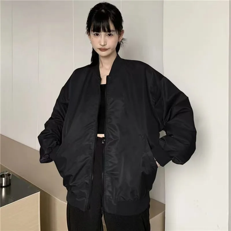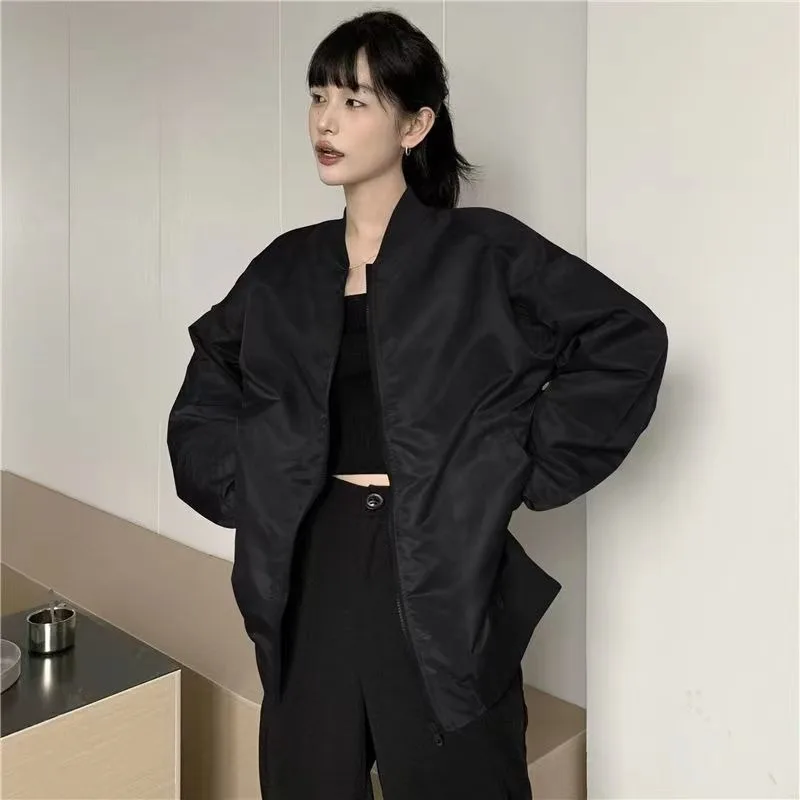 Куртка-бомбер HOUZHOU Y2k Женская в готическом стиле, винтажная уличная одежда в стиле оверсайз, Черная бейсбольная куртка в стиле Харадзюку
