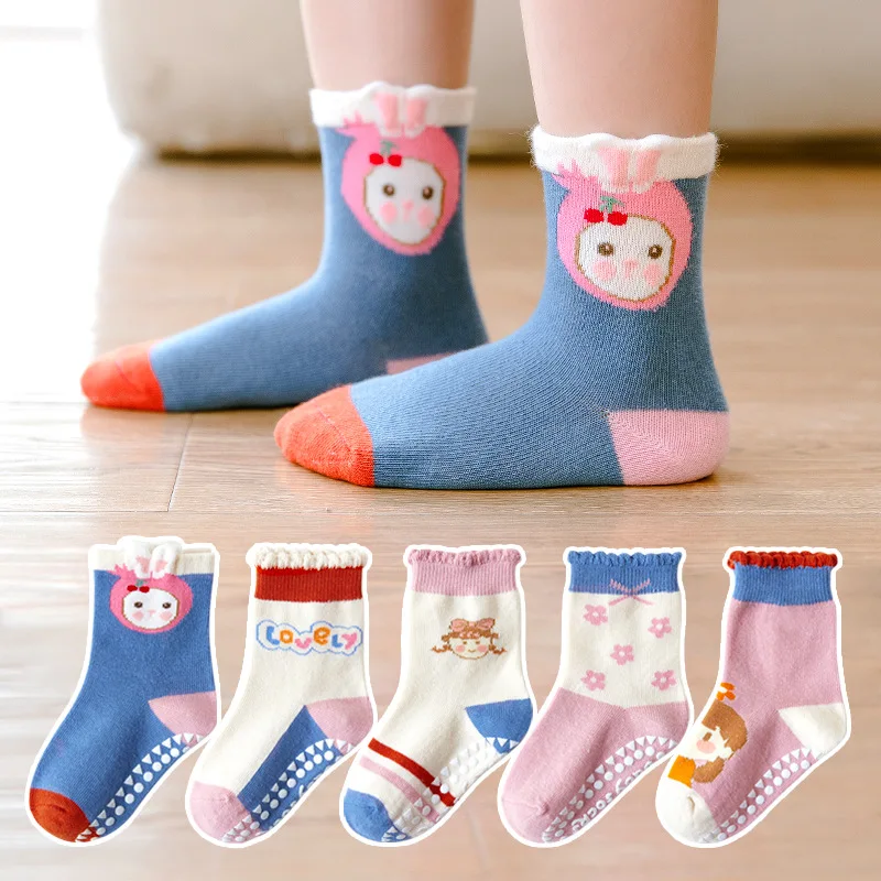 Детские Носки с рисунком От 1 до 12 лет, весна-осень, клей, носки для пола, носки средней длины, носки для батута, Детские хлопковые носки, Нескользящие