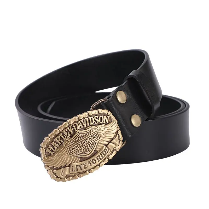 Ремень в стиле ретро для Мотоциклов Harley, универсальный повседневный мужской ремень из чистой воловьей меди с пряжкой с язычком, верхний слой