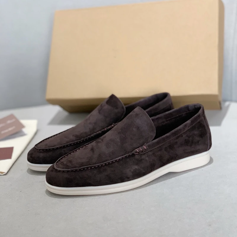 Мужские лоферы из натуральной замши, плоская подошва, мягкая подошва, повседневные прогулочные туфли, большие размеры, весна-осень