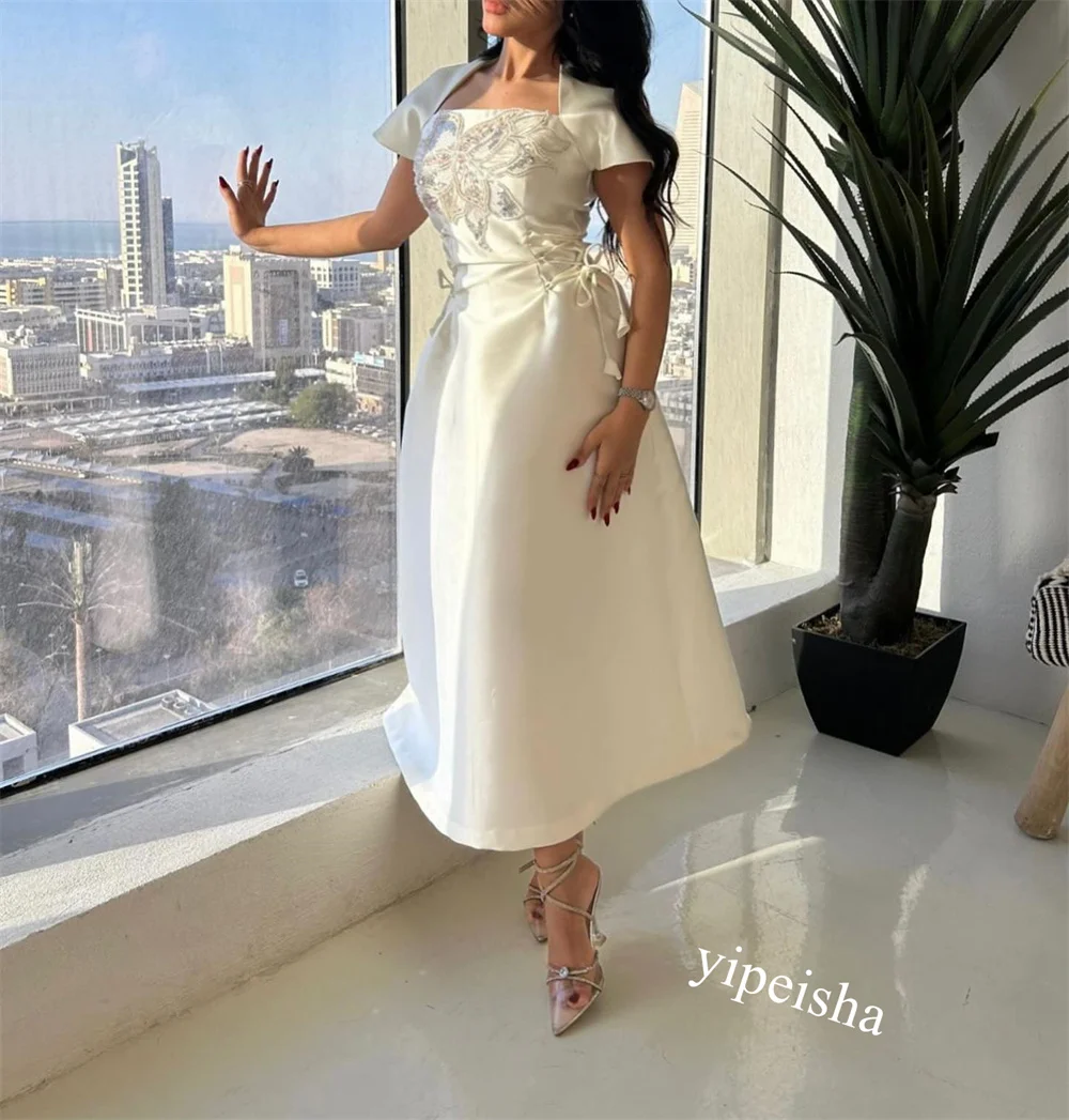 Платье для выпускного вечера из Саудовской Аравии, Атласное Бальное Платье с вышивкой и бисером, бальное платье с квадратным вырезом, платье на заказ, Платья Миди
