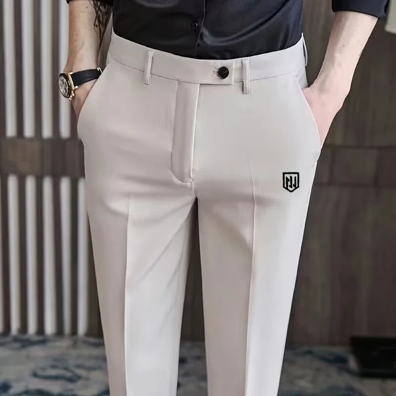 Новинка 2024, Брендовые мужские повседневные брюки с вышивкой, мужские деловые брюки, дышащие мужские костюмные брюки, мужские спортивные бальные брюки