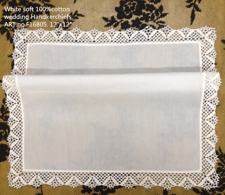 Комплект из 12 модных дамские платки 12-дюймовый белый Хлопковый свадебный вышитый носовой платок с кружевной окантовкой Hankies Hanky для невесты