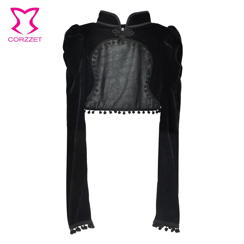 Corzzet/черные фланелевые цельнокроеные теплые болеро с длинными рукавами; Болеро; женская одежда в стиле панк