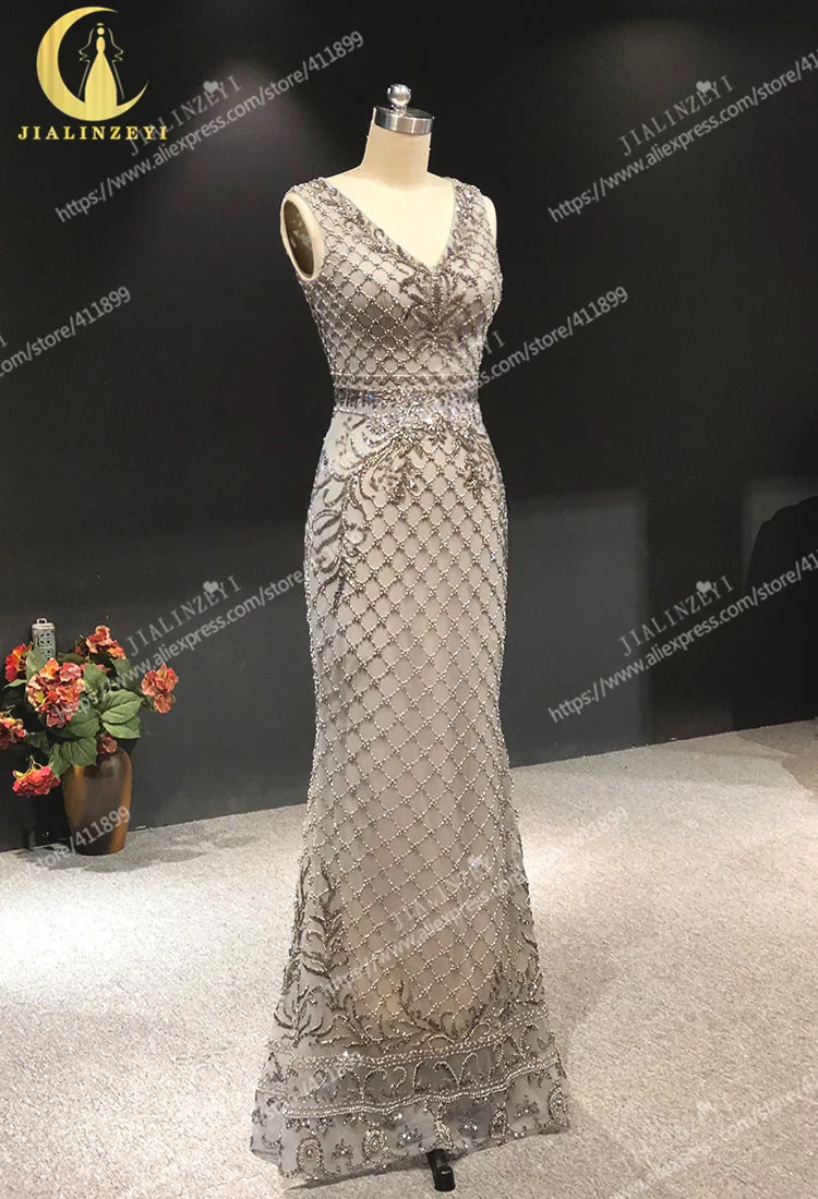 210 Zuhair Murad Роскошная серая шаль ручной работы Русалка с V-образным вырезом двойные халаты de bal деловые платья вечерние платья