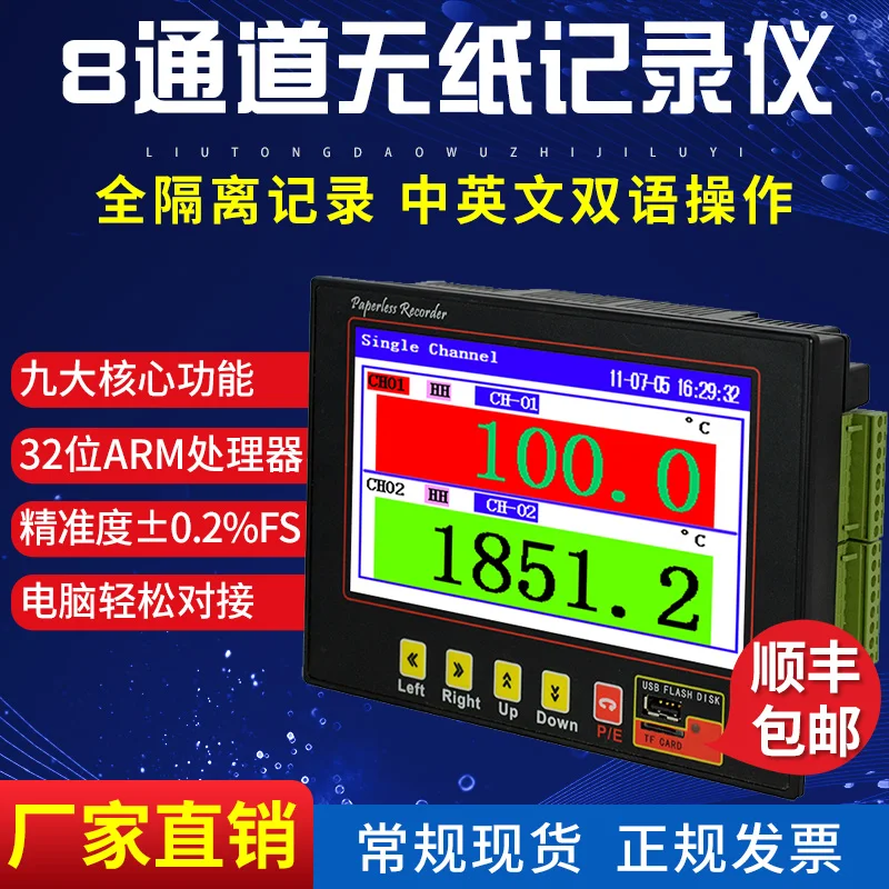 Безбумажная температура и влажность, многоканальный 7-дюймовый цветной экран, цветная печать данных, промышленное давление, ток и напряжение
