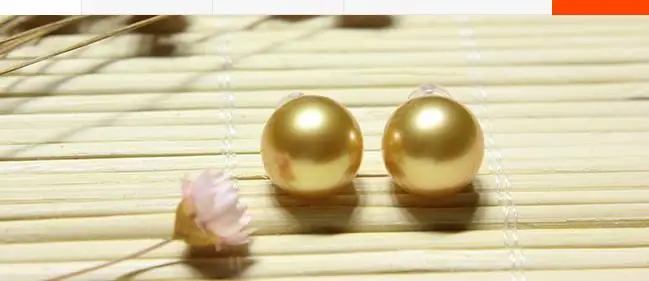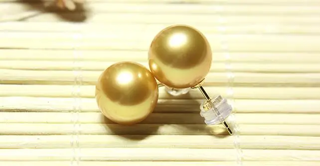 Элегантные серьги с золотистым жемчугом, 10-11 мм, 18 К