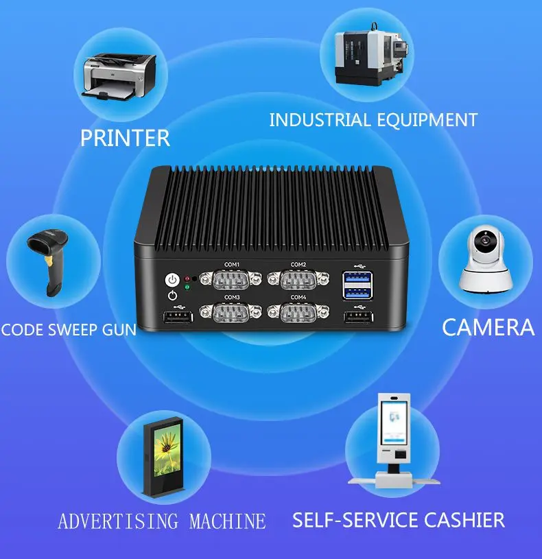 Настольный мини-ПК Intel Gemini J4125/J5005/N4100/N5000 DDR4 Φ 6COM RS485 с алюминиевым безвентиляторным радиатором