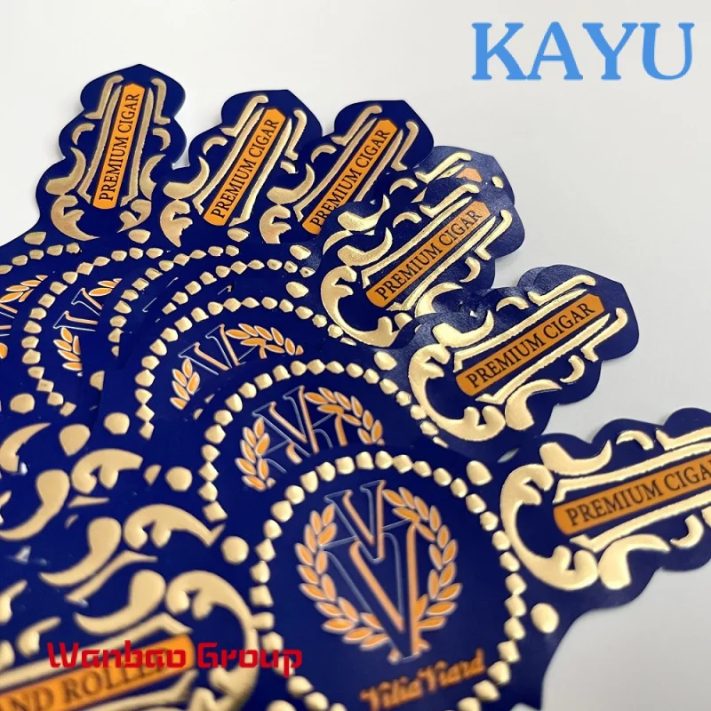 Высококачественный пользовательский золотой телефон с печатью рельефная Наклейка Logo Cigar Band самоклеющаяся этикетка для упаковки.