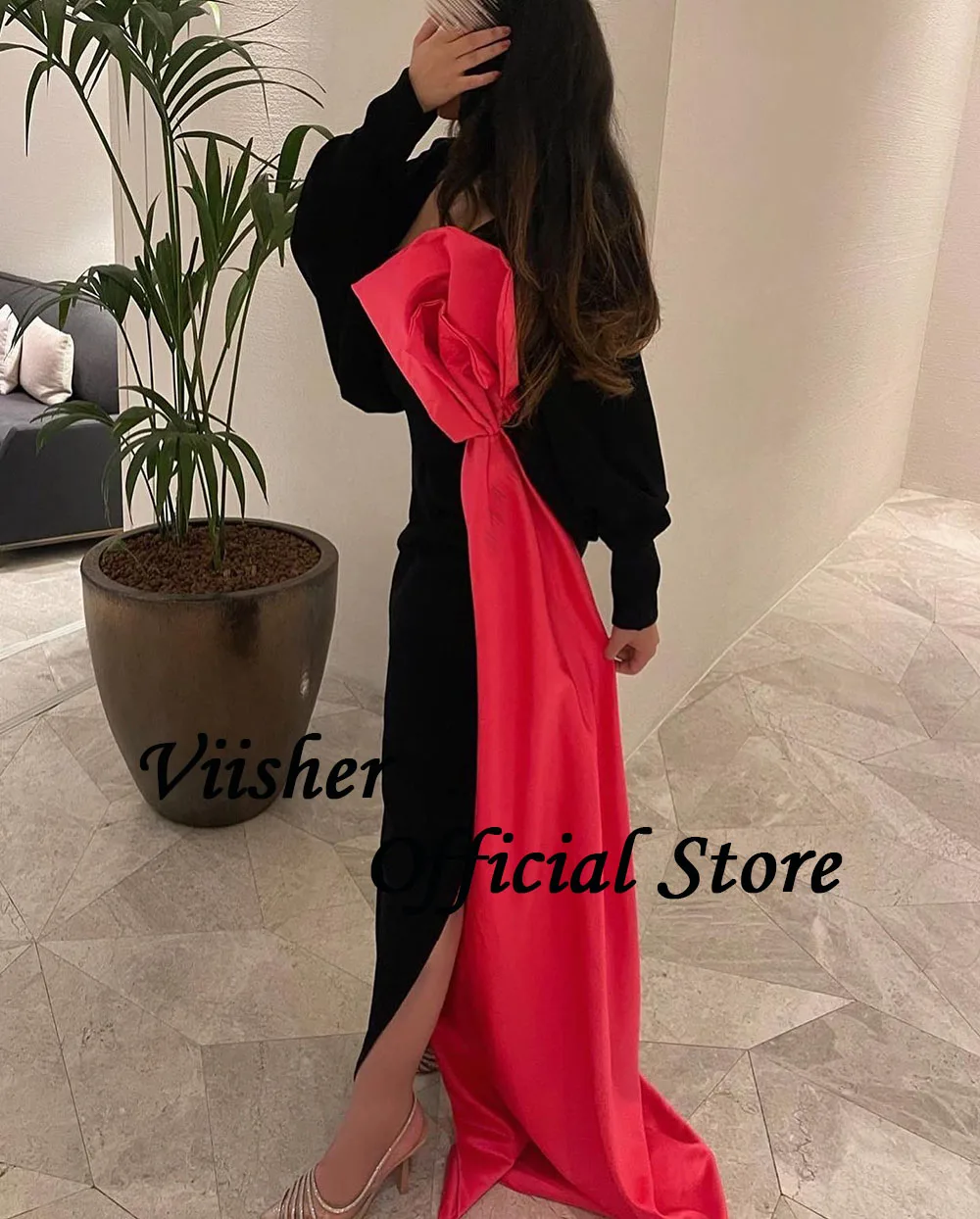 Viisher черные вечерние платья-русалки с длинным рукавом и V-образным вырезом арабское дубайское платье для выпускного вечера с красным бантом элегантные вечерние платья