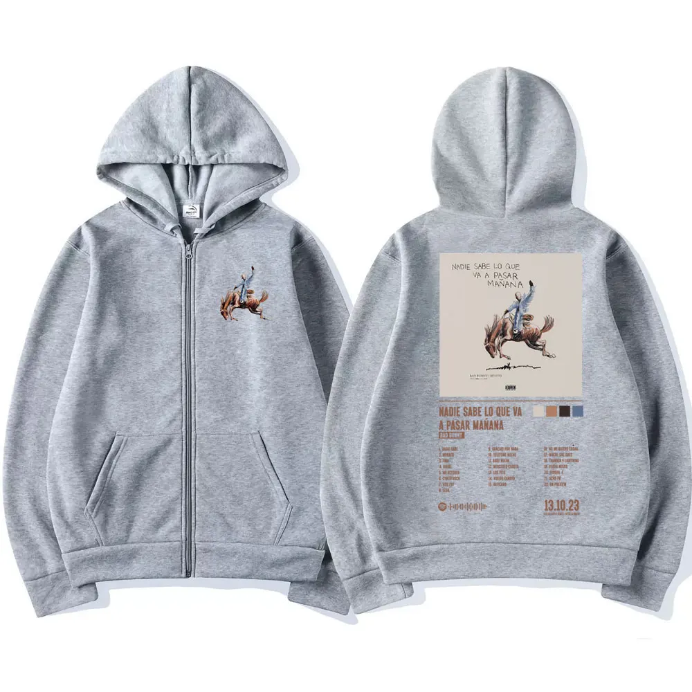 Толстовка с капюшоном на молнии и принтом альбома Bad Bunny Nadie гасет Ло-что ва-а-пар Манана Мужская Женская куртка оверсайз в стиле хип-хоп на молнии Y2k Толстовка