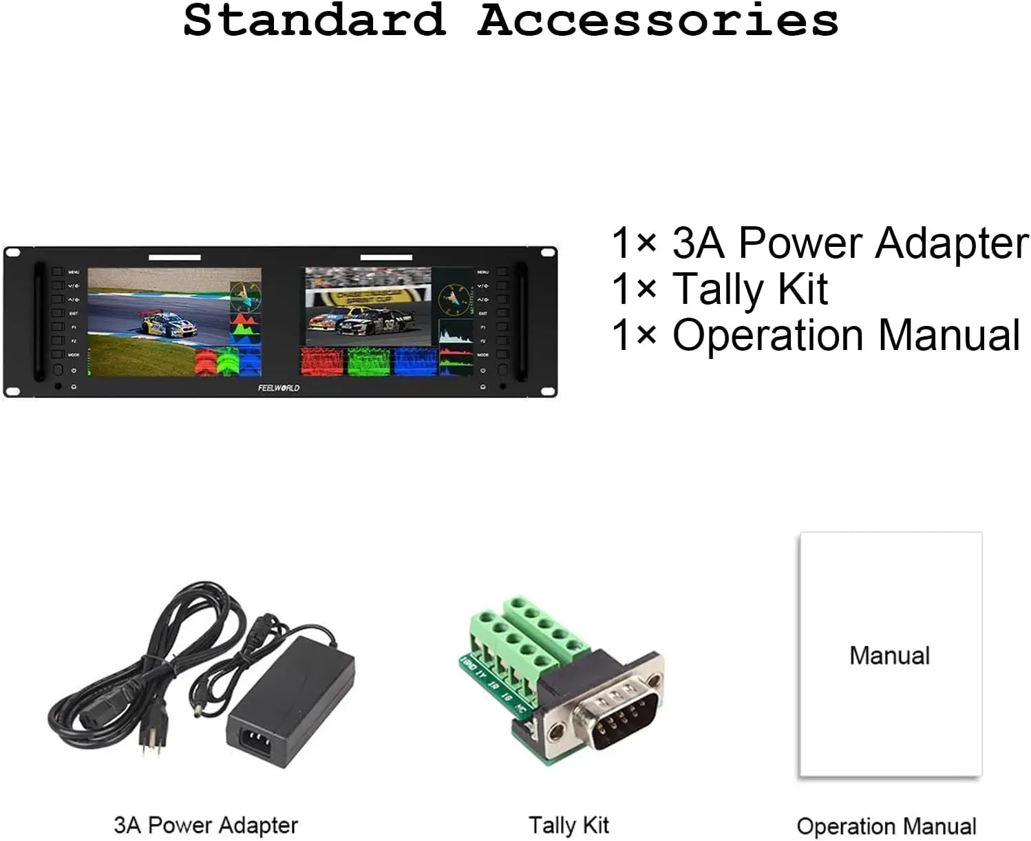Монитор FEELWORLD D71 Plus Dual 7 дюймов 3RU для вещания с креплением на стойке и функцией воспроизведения сигналов IPS 1920x1200 видео SDI HD дисплей