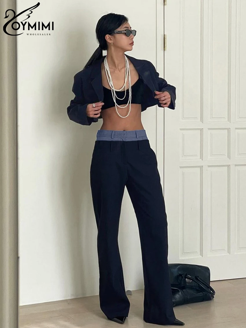 Модный Свободный офисный комплект Oymimi из 2 предметов цвета хаки, женская одежда, элегантный укороченный Топ с длинным рукавом и прямые брюки со средней талией для женщин